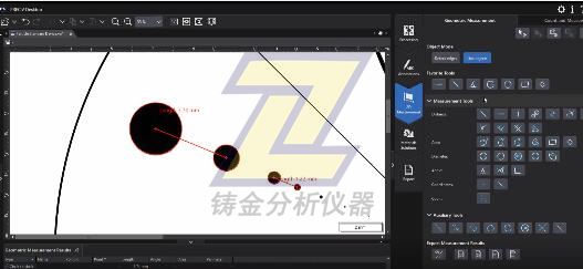 GJI交互式測量,包括自動邊緣檢測和輔助線(任意線、垂直線、水平線、點到點距離、折線、自由折線、線性尺、垂線長度、多條垂線長度、偏心距、焊縫厚度、自由多邊形、閉合多邊形、內插多邊形、魔杖、矩形、旋轉矩形、2 點圓、3 點圓、邊緣檢測圓、多點圓、旋轉橢圓、3 點夾角、4 點夾角、量角器、點坐標、中點坐標、點計數) |