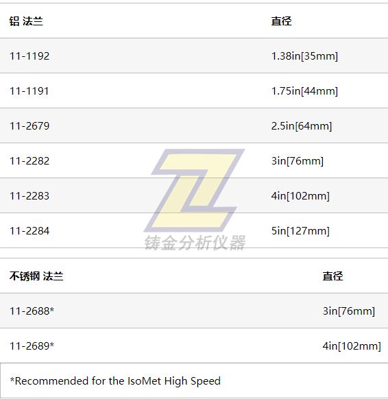 在使用IsoMet產品系列時,法蘭能支撐保護金剛石、CBN(立方氮化硼)和砂輪切割刀片。請根據材料的尺寸和種類選擇合適直徑的法蘭。