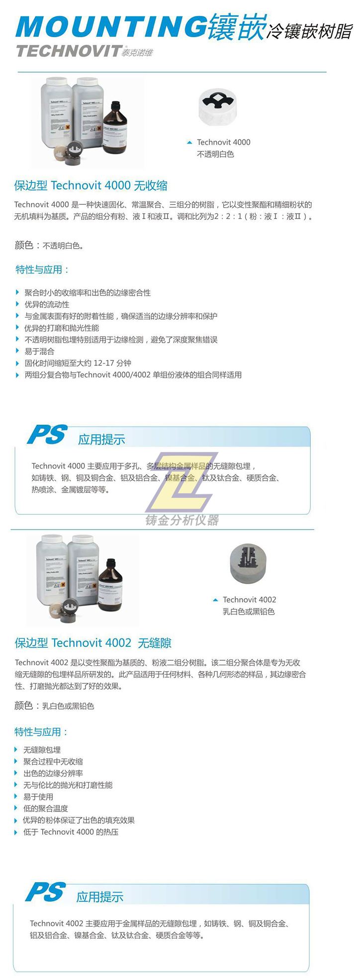 您所在位置: 首頁 > Technovit泰克諾維4000/4002保邊型冷鑲嵌樹脂