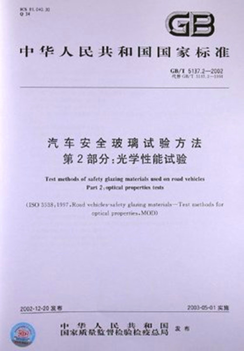 GB T 5137.2-2002汽車安全玻璃試驗方法第2部分:光學性能試驗