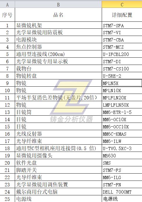 訂購的奧林巴斯測量顯微鏡STM7配置如下: