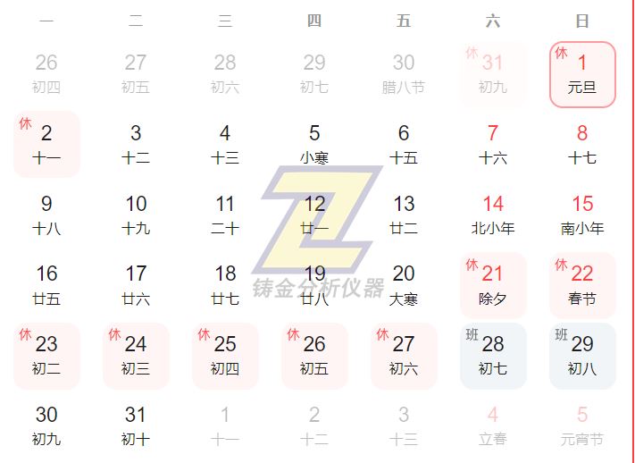 2024年元旦放假安排-上海鑄金分析儀器有限公司