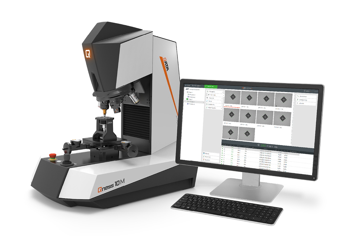•   試驗力范圍 20 gf – 10 kgf Option: 0.25 gf – 62.5 kgf維氏, 努氏, 布氏, Option: 洛氏Very precise XY slide 2m全景相機維氏/努氏/布氏/洛氏硬度計系列Qness 10/60將QATM顯微硬度測試提升到了一個新的水平:新一代的實驗室設備將硬度測試和顯微鏡的優點結合,操作方便。光學系統配有彩色攝像頭,能獲得可重復和可靠的結果。這款維氏/努氏/布氏/洛氏硬度計中的“Qness 10/60 A+”型號尋求了自動化,并配備了所有三個軸系
