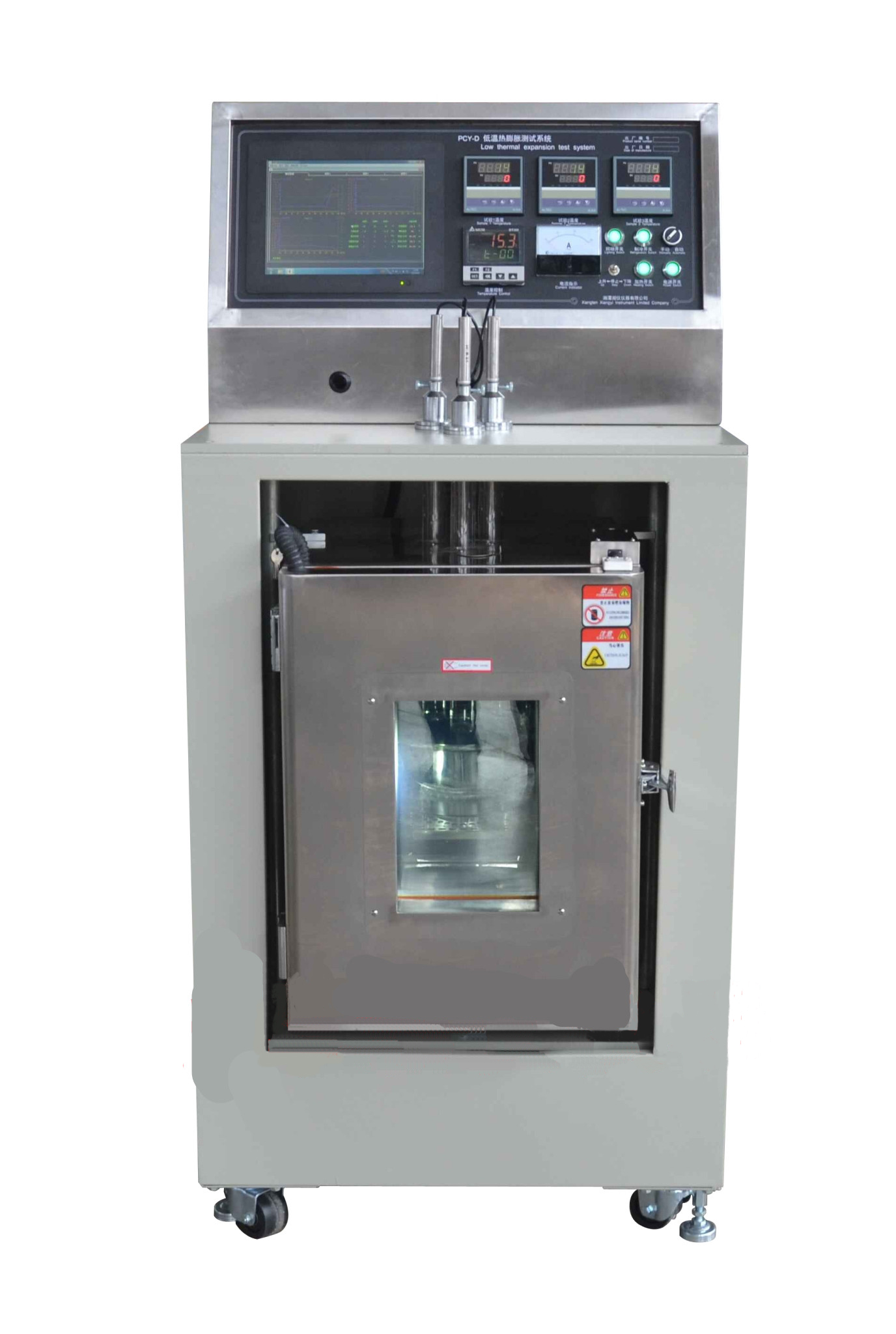 ▲高溫熱膨脹儀PCY系列熱膨脹系數測定儀概述: PCY系列熱膨脹儀用于檢測固體無機材料、金屬材料的高溫膨脹性能,特別是剛玉、耐火材料、精鑄用型殼及型芯材料、陶瓷、陶瓷原料、瓷泥、釉料、玻璃、石墨、炭素等無機(有機)材料、金屬制品,高分子材料的性能,為科研、教學提供測試手段。通過本儀可完成試樣線變量、線膨脹系數、體膨脹系數、急熱膨脹、軟化溫度、燒結的動力學研究、玻璃化轉變溫度、相轉變、密度變化、燒結速率控制(RCS)以及它們變化曲線。也可根椐用戶要求對試樣進行氣氛保護,可抽真空,真空度0.1MP