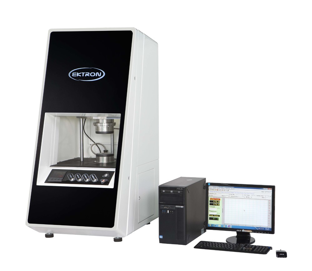 •   臺灣曄中密閉型無轉子流變儀EKT-2003S密閉型無轉子流變儀---EKT-2003S,由曄中科技所研發之電腦化流變儀。依據ASTM D5289及ISO602國際標準規范所設計制造。此系列無轉子流變儀采用密閉型之雙圓錐模腔結構,有效維持模腔內壓力穩定、避免滑動及保持系統徑向剪切應力之恒定,可JQ反映出膠料之架橋粘彈性性質。裝置在上模的精密扭矩感測系統,可消除外來機械阻力對扭矩量測精度的影響而提升系統之靈敏度。每次測試可同時獲得多種粘彈性相關曲線,包含有:硫化(彈性)曲線、黏性曲線、黏/彈性曲線、TANδ曲