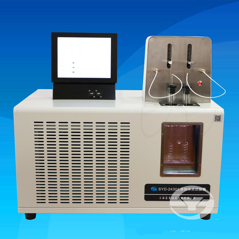 SYD-2430A自動冰點試驗器產品介紹本儀器是按照中華人民共和國石化行業標準SH/T 0090-1991《發動機冷卻液冰點測定法》、中華人民共和國標準GB/T 2430《航空燃料冰點測定法》規定的要求設計制造的,適用于噴氣燃料、發動機冷卻液及其濃縮液冰點等指標的測定,是一款多用途的自動冰點試驗器。SYD-2430A自動冰點測定儀主要技術特點 1、本儀器由制冷系統、工控上位機控制系統、嵌入式硬件控制系統、機電攪拌系統、冷浴試驗觀察系統、框架結構殼體系統等組成。 2、制冷系統采用了復疊式制冷,制冷效果好,冷