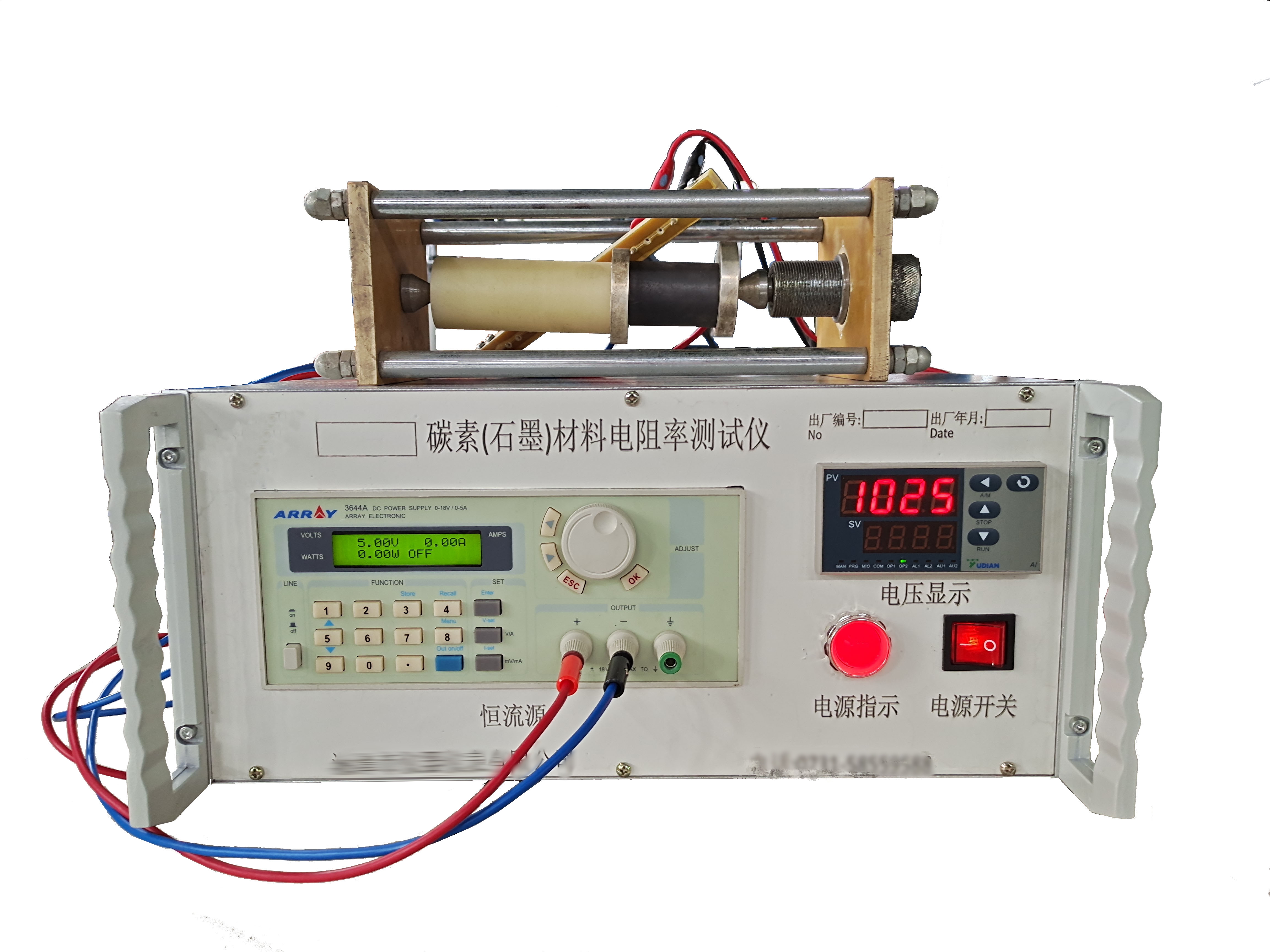 •   石墨/炭素_材料電導率測試儀WDT本儀器符合YS/T63.2-2006鋁用炭素材料檢測方法中第二部分陰極炭塊和預焙陽極室溫電阻率測定的要求,是測量碳素材料,石墨等塊狀材料導電性能的專用儀器。儀器采用高精度穩流源供電,電流、電壓自動顯示,并且穩定,準確,直觀,方便。靈活的測試試樣平臺適用于不同直徑和不同長度的試樣的測試。石墨/炭素_材料電導率測試儀WDT主要技術參數:1、試樣尺寸:圓柱體試樣Ф50mm130mm或Ф20mm160mm;2、恒流源電流:0-5A。3、電壓檢測:0-200mV,0-2V。4、電壓