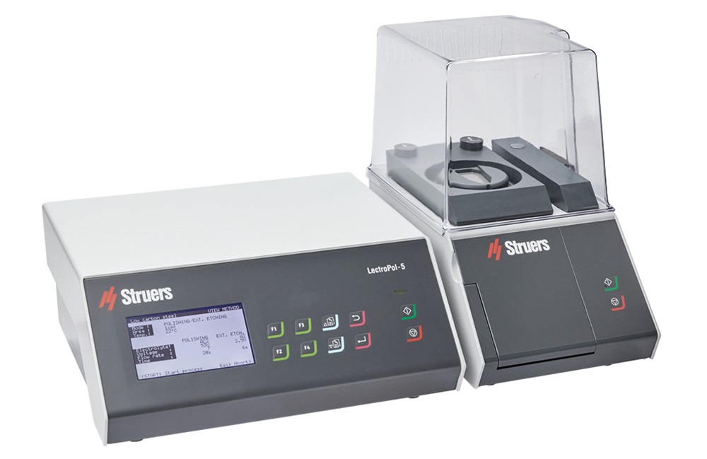 •   LectroPol-5 專用于對金相試樣進行自動化電解拋光和蝕刻。掃描功能(用于方便地測定參數)、內置的功能以及數據庫(其中包含適用于各種材料的方法)可縮短拋光時間和實現可再生產性。LectroPol-5 中包含兩個單元,即控制單元和拋光單元。這兩個單元可以彼此分離。電解拋光機LectroPol-5特點:▲自動測定參數LectroPol-5 支持掃描功能,有助于確定用于拋光和刻蝕的正確電壓,從而節省時間和避免人為錯誤。LectroPol-5 可在用戶選擇和設置電壓時顯示掃描曲線。現在,很容易在對樣品材料進