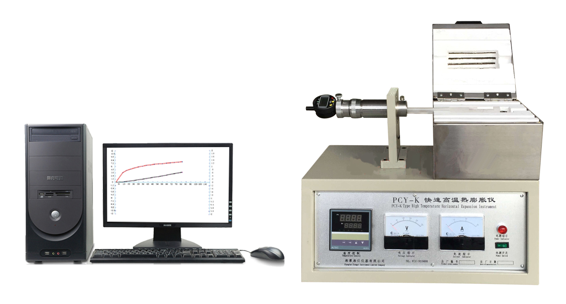 •   快速高溫熱膨脹儀PCY-K(開啟式、快速測試)▲快速高溫熱膨脹儀PCY-K概述: PCY-K快速高溫熱膨脹儀用于檢測精鑄用型殼及型芯材料、陶瓷、陶瓷原料、瓷泥、釉料、玻璃、石墨、炭素等無機(有機)材料、金屬制品,高分子材料的性能,為科研、教學提供必備的測試手段。通過本儀可完成試樣線變量、線膨脹系數、體膨脹系數、急熱膨脹、軟化溫度、燒結的動力學研究、玻璃化轉變溫度、相轉變、密度變化、燒結速率控制(RCS)以及它們變化曲線。 也適用于GB/T3810.8-2006對陶瓷磚線性熱膨脹的測定,GB/