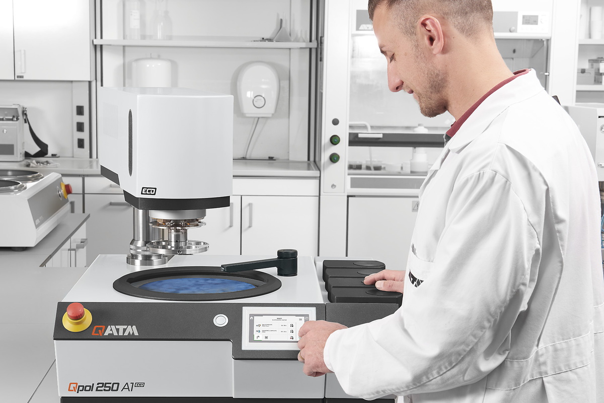 QATM自動研磨/拋光機QPOL 250 A2-ECO工作盤: 200/250 mm程序存儲可得到重復的結果雙盤裝置樣品數量(單點): 1-6 個 樣品 40 mm