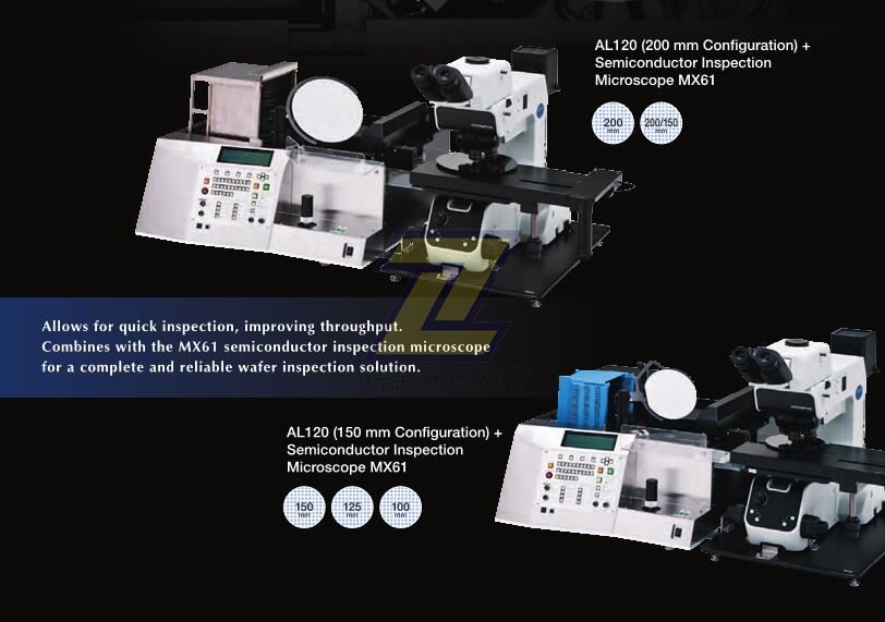 =AL120搭載奧林巴斯MXZYE晶圓檢查顯微鏡系列,通過各種觀測方法,包括:明視場、暗視場、微分干涉(DIC)、近IR(近紅外線)和DUV(深紫外線),實現了ZHUY的圖像分辨率和清晰度。電動物鏡轉換器和孔徑光闌相互鎖定,可以優化各物鏡的照明和對比度。如果特別訂制,AL120還可以應用到其他型號的顯微鏡上。