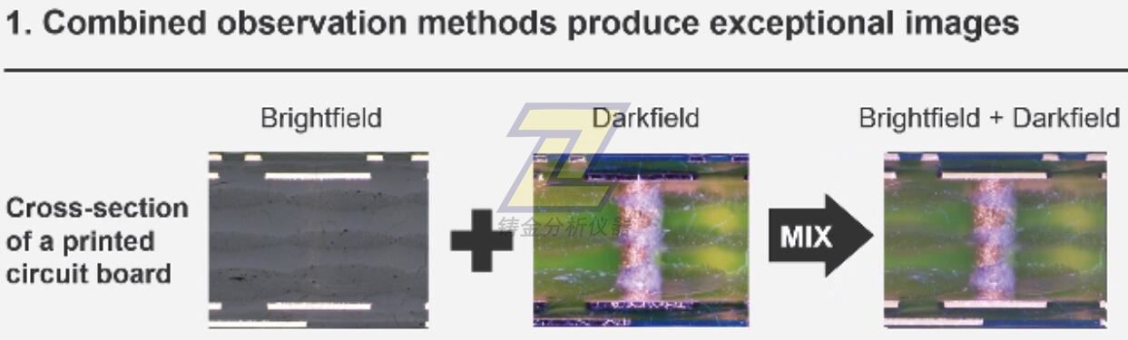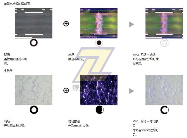 MIX技術將暗場與另一種觀察方法(例如明場或偏振)相結合,使您能夠查看傳統顯微鏡難以觀察的樣品。圓形LED照明器具有定向暗場功能,可在指定時間照射一個或多個象限,減少樣品的光暈,以便更好地觀察表面紋理。