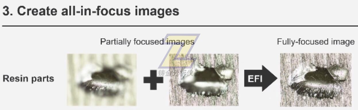 EFI配合手動或電動Z軸聚焦裝置,可生成高度圖像,對結構進行可視化觀察。