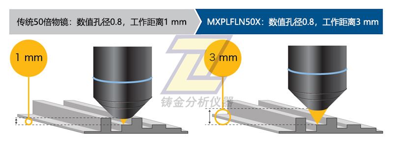 高數值孔徑和長工作距離相結合: