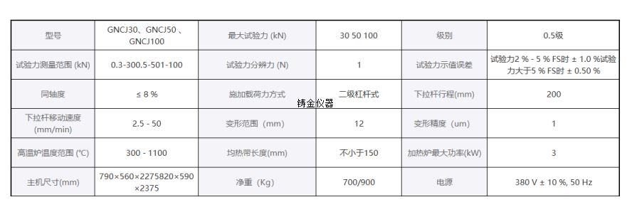 相關(guān)說(shuō)明:上海鑄金分析器有限公司可根據(jù)用戶的實(shí)際情況,提供“蠕變?cè)囼?yàn)機(jī)”相關(guān)方案。本站信息僅供參考,相關(guān)產(chǎn)品可能存在已停產(chǎn)、升級(jí)、變更等情況,不保證相關(guān)信息的及時(shí)、準(zhǔn)確。本公司支持新廣告法及其它法律法規(guī),已盡量避免相關(guān)詞語(yǔ)及違法違規(guī)信息,但頁(yè)面眾多信息較早,某些詞僅是在某特定時(shí)期、特定環(huán)境、限定范圍內(nèi)的描述,請(qǐng)勿誤解。當(dāng)然,也不排除錄入錯(cuò)誤、漏刪、被惡意攻擊篡改等可能性。為避免誤解,在此鄭重聲明,上海鑄金分析儀器有限公司所有網(wǎng)頁(yè)上的絕對(duì)化用詞與功能性用詞全部失效。如您介意,敬請(qǐng)忽略相關(guān)文字、聯(lián)系鑄金更改或直接離開(kāi)本站。更多信息可閱讀本站首頁(yè)(或 關(guān)于鑄金 菜單下)“網(wǎng)站聲明”。如您對(duì)“GNCJ系列機(jī)械式持久蠕變?cè)囼?yàn)機(jī)”有需求可聯(lián)系鑄金或廠家獲取更新更準(zhǔn)確信息。